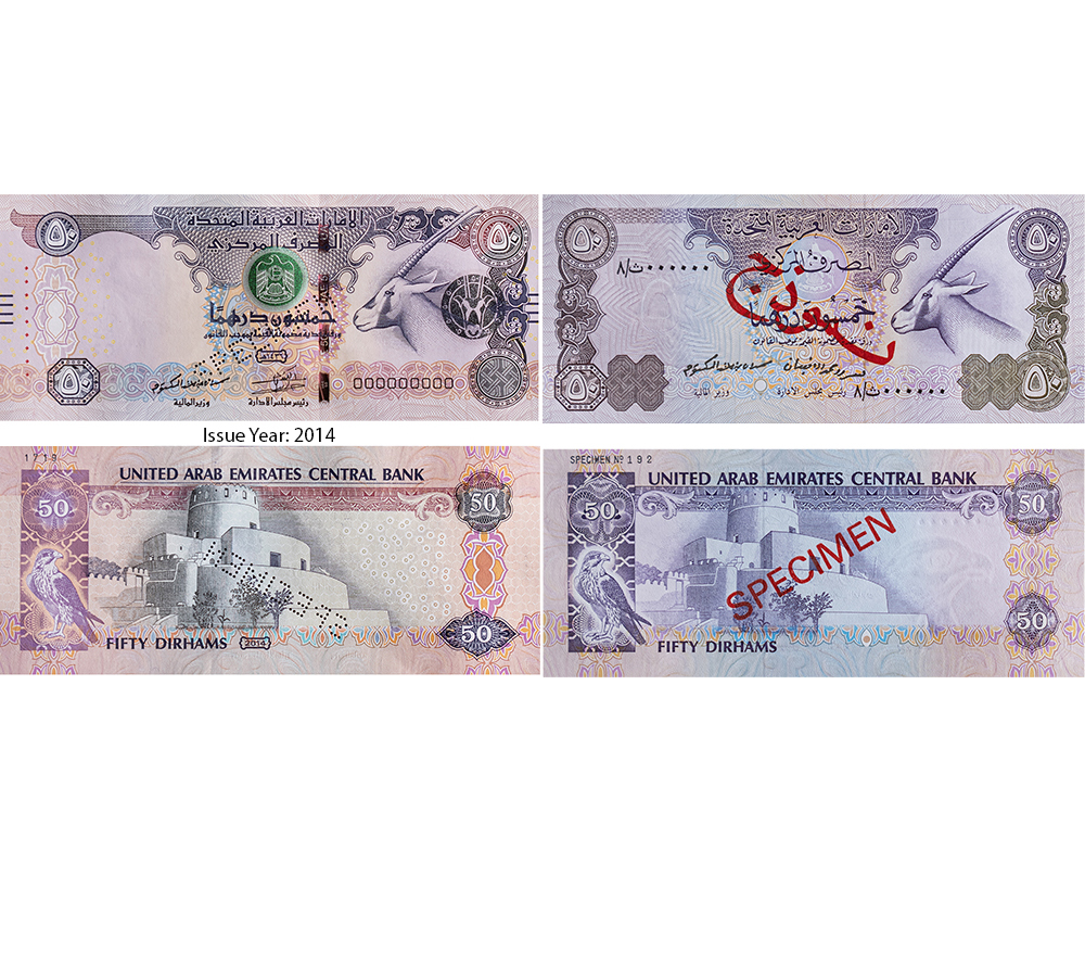 Źródło: Central Bank of the UAE - https://www.centralbank.ae - szczegóły: https://www.centralbank.ae/en/our-operations/currency-and-coins/circulated-currency/